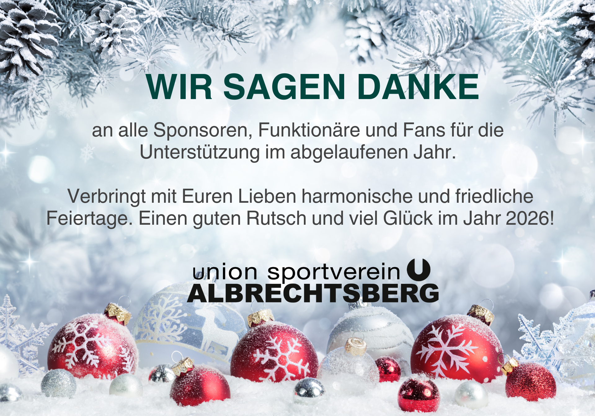 Große Freude beim USV Albrechtsberg: Unser Vorstandsmitglied und Ordnerobmann Markus Enne und seine Kathrin dürfen sich über die Geburt ihrer Tochter freuen. Sie hat sich mit dem 24. Dezember 2025 um 16:44 Uhr ein ganz besonderes Geburtsdatum ausgesucht. Natürlich ließ es sich eine Abordnung unserer USVA-Familie nicht nehmen, beim traditionellen Storchaufstellen tatkräftig mitzuhelfen. Wir wünschen der jungen Familie alles Gute für die gemeinsame Zukunft und ganz viel Freude zu dritt!